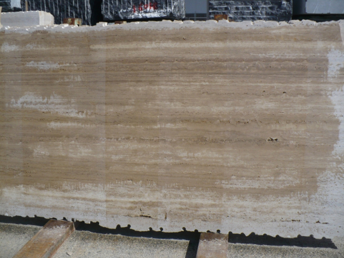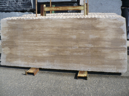 Travertino Vallanca in rough slabs suitable to be cut in cut to size and produced in the desired finish (honed, brushed...). Material quarried and manufactured in Spain.